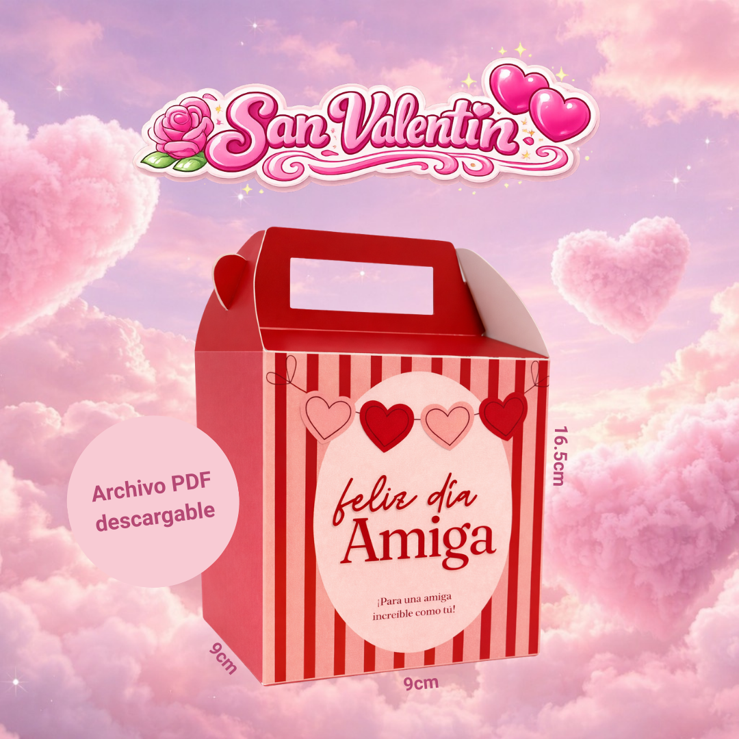 Sorprende a tus amigas este San Valentín con una cajita imprimible lista para armar, ideal para regalar dulces, chocolates o pequeños detalles hechos con cariño.